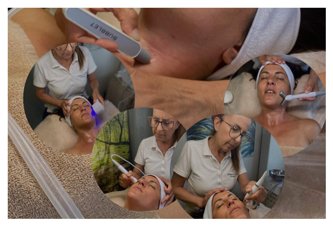 Un rituale professionale che integra 6 tecnologie in un unico percorso: detersione profonda, esfoliazione, ossigenazione, anti‑age occhi/labbra, tonificazione caldo/freddo e microcorrenti. Risultati visibili fin dalla prima seduta: pelle più luminosa, levigata e tonica, senza dolore