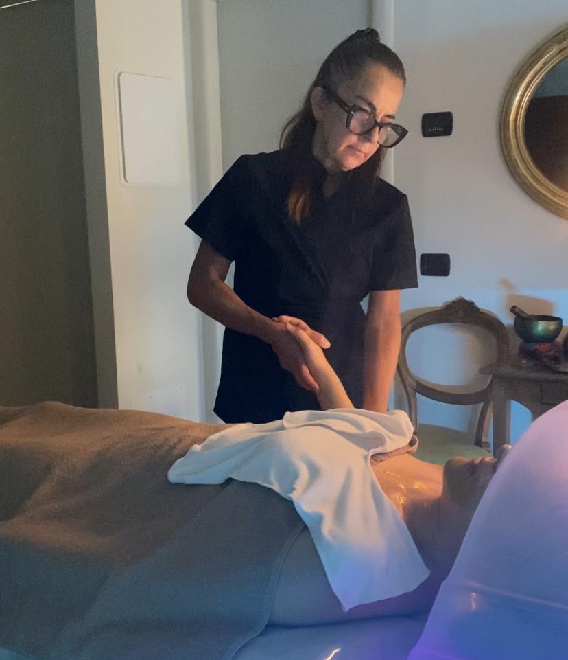 Sono specializzata in massaggi, trattamenti viso e corpo, con un approccio unico che unisce le tecniche più efficaci del mondo olistico e dell'estetica professionale. Ogni trattamento nasce dall’ascolto delle esigenze individuali e viene personalizzato per donarti equilibrio, leggerezza, energia e armonia.Mi sono formata con passione in Italia e in India, approfondendo discipline come l’Ayurveda, la riflessologia, la terapia craniosacrale e molte altre tecniche specialistiche di massaggio.